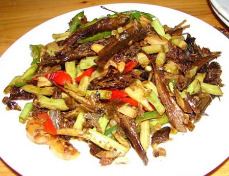 西樵的菜以正宗粤菜为主。来西樵就是要吃山珍野菜,,用料十分广泛,龟、蛇、鼠、蚁、雀皆可烹煮,野菜、薯叶、草菇、瓜果都是珍品,西樵山野菜有走马风、紫贝菜、佛手瓜等。